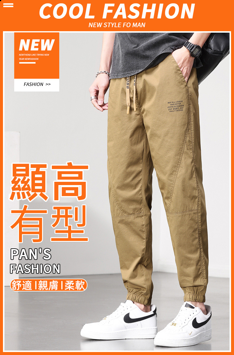 【台灣熱賣】2025工裝冰絲休閒褲子男寬鬆束腳夏季薄款速乾褲新款運動九分長褲